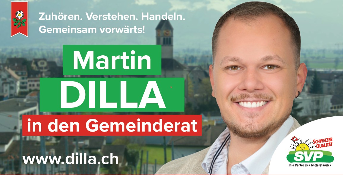Die SVP Uznach ist überzeugt: Mit Martin Dilla bekommt Uznach im Gemeinderat eine verlässliche, sachorientierte Stimme, die Lösungen sucht, Verantwortung übernimmt und für eine bürgerliche, pragmatische Politik steht.